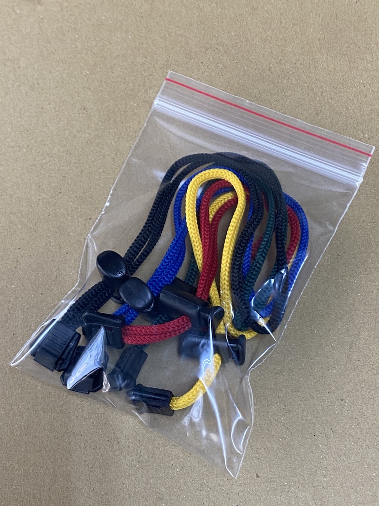 如照片所示,为客户量身打造其所需规格,替其开模、组装绳带及扣件,